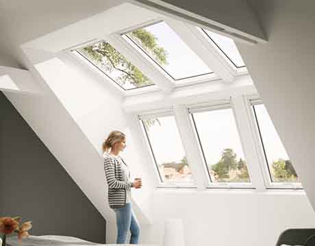 Durch größere Fenster oder Fensterkombinationen sorgen Sie für lichtdurchflutete Räume und mehr Lebensqualität unter dem Dach. Die hervorragenden Wärmedämmeigenschaften moderner Dachfenster-Verglasungen sorgen für eine hohe Energieeffizienz.